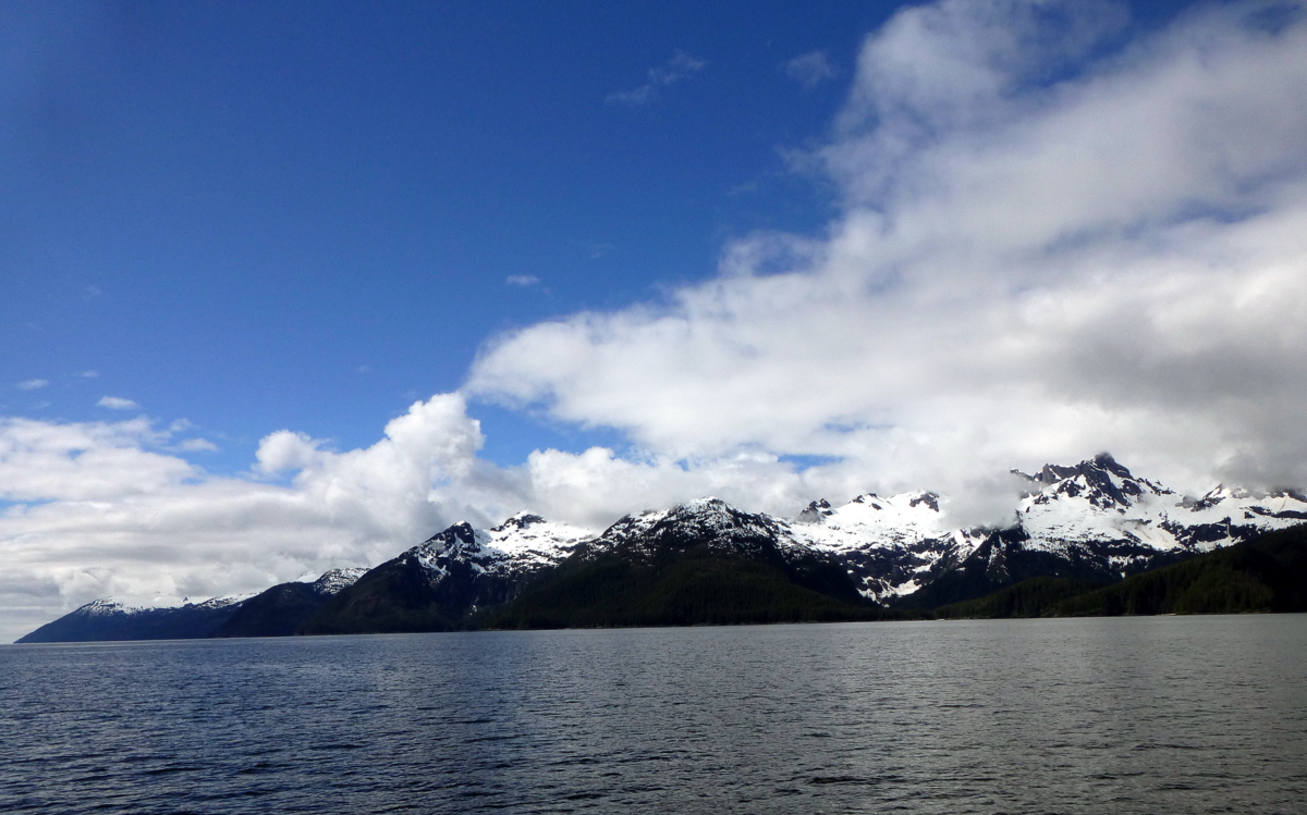 For the first time we wake up the glorious sunshine in Hamilton Cove which brightly reflects off the tan sandy beach. Five knots of soft breeze from the southwest greets us as round the top of Kuiu Island into south Chatham Strait. Rippled flat seas set the foundation for a picturesque view of the snow capped mountains of east Baranof Island.